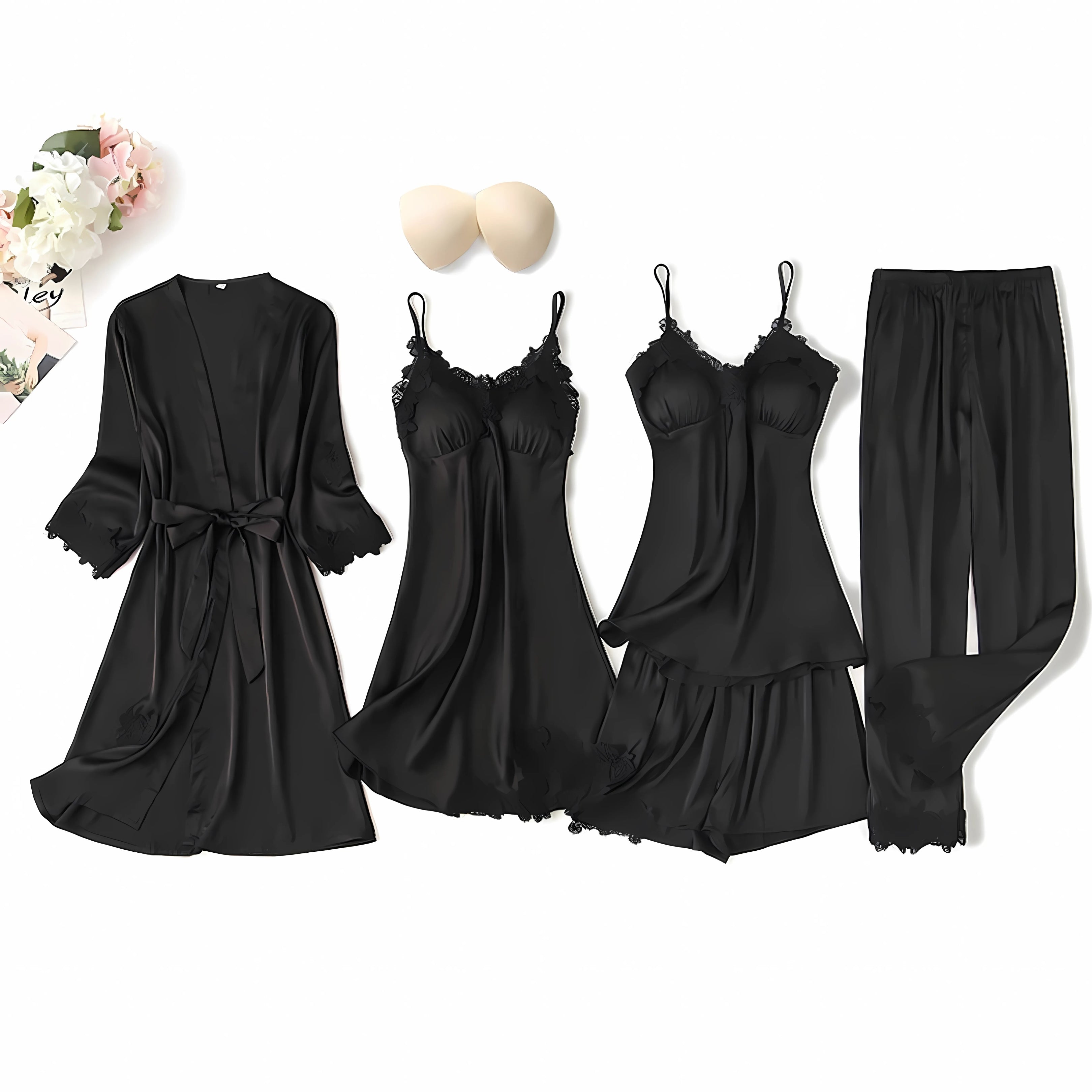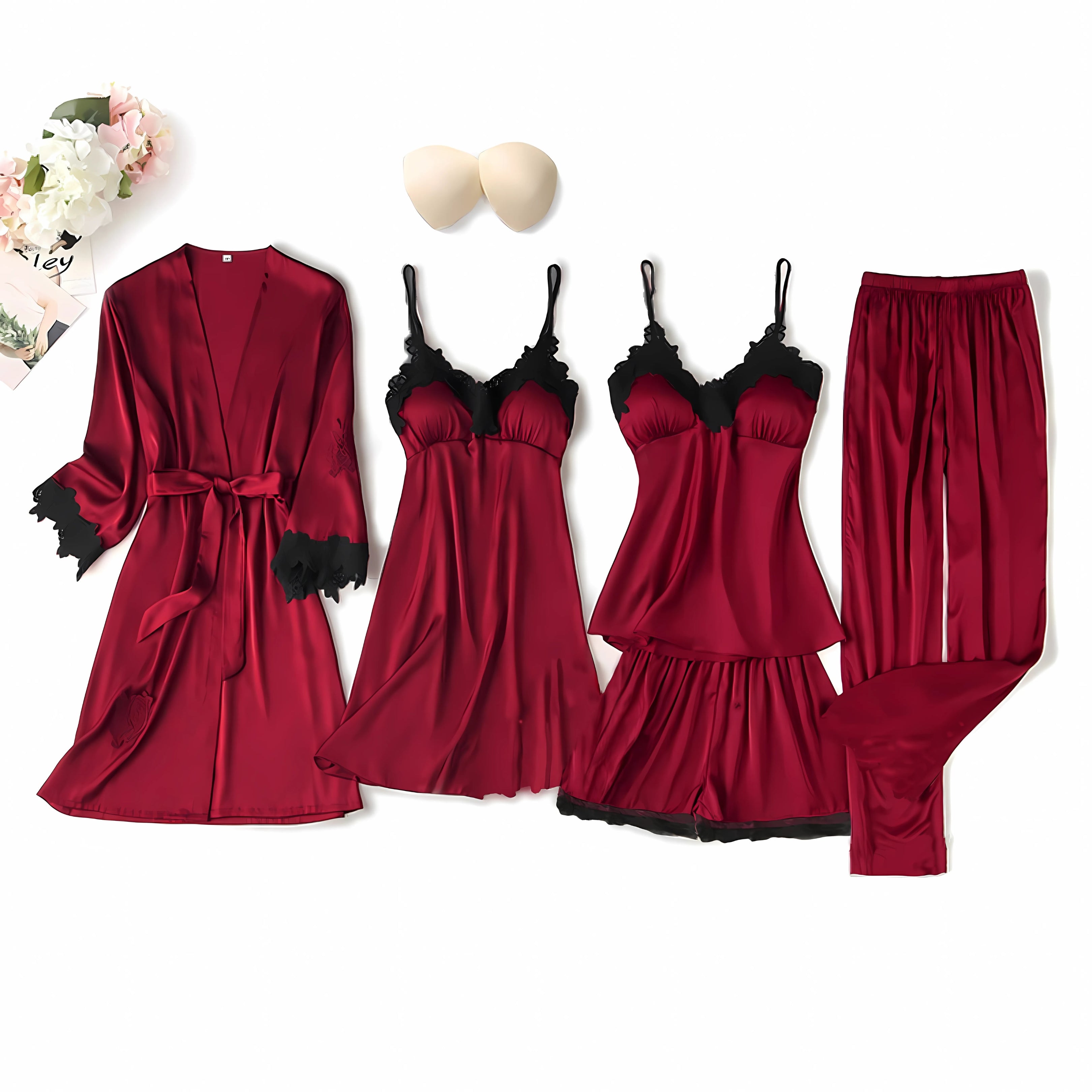 Upgrade your nightwear collection with this 5-piece Hot Lace Short Nighty Set for women and girls. Made from premium silk fabric, this set combines style, comfort, and elegance with a sexy touch. The padded, stretchable design ensures a perfect fit while keeping you comfortable all night.